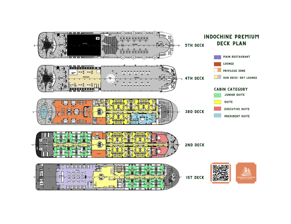 Bringing European features together with an Asian essence with 37 luxury cabins, diverse and inspiring – where art meets architecture in the heart of Halong Bay. Come and discover a newest cruise chic with us, whether you choose to rejuvenate in our inspired Spa, a outdoor Pearl pool, enjoy a day at our miniature golf courses in among top world's most beautiful places or dine at sundeck by Indochine renowned professional chef.