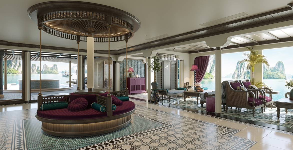 With 33 spacious suites, private jacuzzis, and expansive sun terraces, every cabin is a retreat of comfort and sophistication. Onboard, guests enjoy exclusive access to the Oasis Pool, Nordic-style sauna, mini-golf, cinema, cigar & poker lounge, and curated experiences like Vietnamese tea ceremony, cooking class, and butler service.